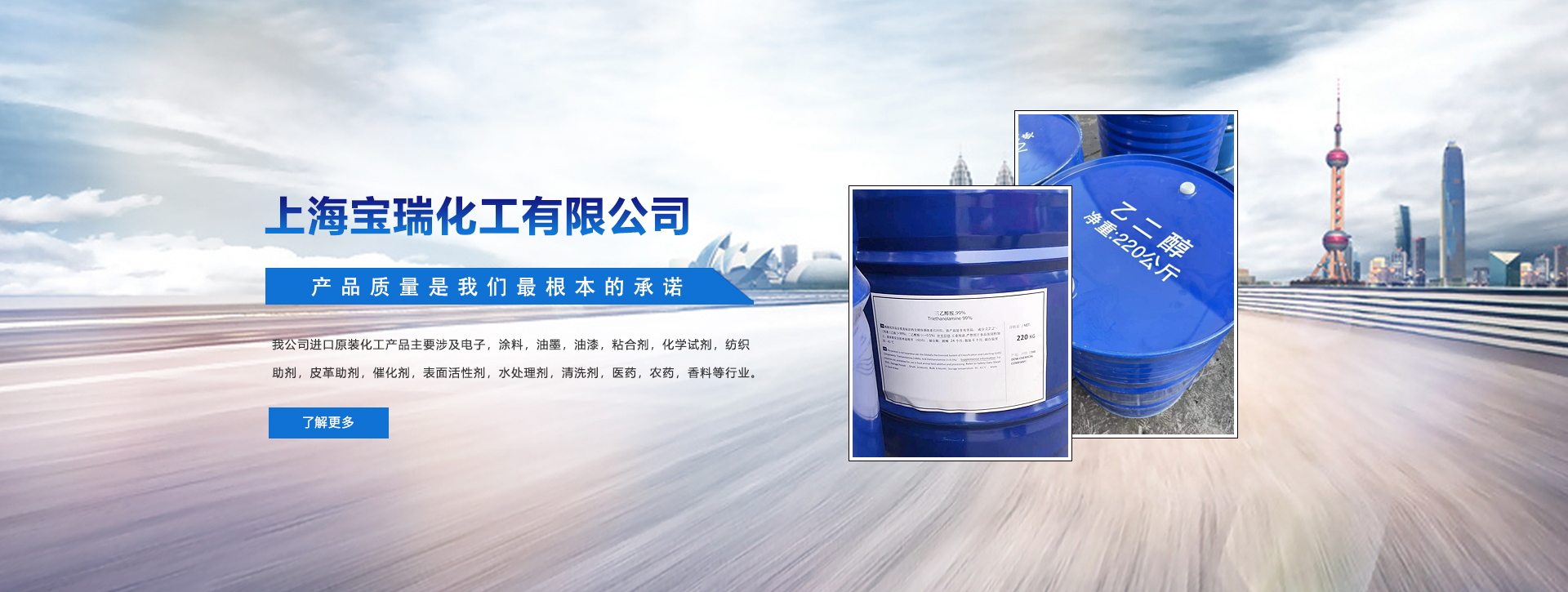 上海寶瑞化工有限公司組建于二00三年,是專門經(jīng)營進口原裝化工原料的專業(yè)化工公司. 公司自創(chuàng)建以來. 一直致力于國內(nèi)外市場的開發(fā),不斷拓寬經(jīng)營渠道,擴大經(jīng)營規(guī)模,并且與美國DOW , SHELL , EXXONMOBIL,德國BAYER, BASF。法國ARKEMA ,韓國LG ,SKC,南非SASOL南京揚子石化.上海金山石化,吉林吉化等多家企業(yè)建有長期隱定的合作關(guān)系。我司的銷售網(wǎng)絡主要遍及華東地區(qū)。 與多家外資企業(yè),中外合資企業(yè),民營企業(yè)建立了直供的業(yè)務關(guān)系.為行業(yè)的高端廠家提供優(yōu)質(zhì)原料和專業(yè)周到的服務。在和國內(nèi)外優(yōu)秀企業(yè)建立良好的合作關(guān)系的同時,我司還將我們所掌握的國內(nèi)外多種行業(yè)的發(fā)展信息反饋給我們的相關(guān)行業(yè)的客戶,為我們的客戶提供了眾多其本行業(yè)所發(fā)展趨勢的信息,并積極引導客戶掌握最新產(chǎn)品行情和工業(yè)技術(shù)。贏得了國內(nèi)外合作伙伴的贊賞和信任。